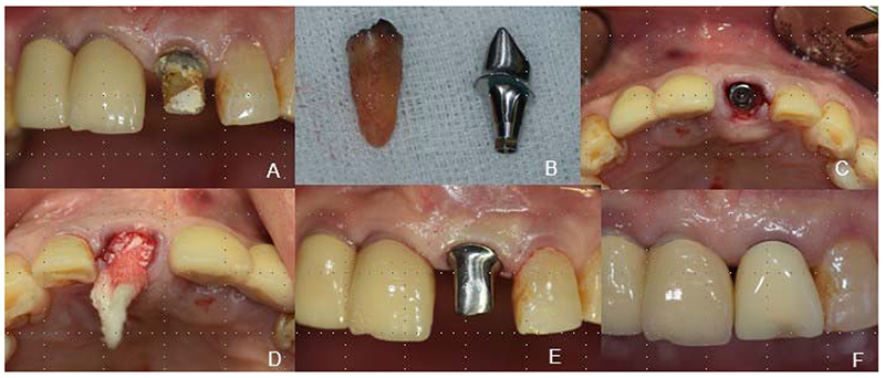 ۴. خارج کردن دندان قبلی : اگر هنوز دندان آسیب دیده کشیده نشده باشد، ابتدا دندان با دقت و ملایمت کشیده میشود تا آسیبی به استخوان و بافتهای نرم نرسد.