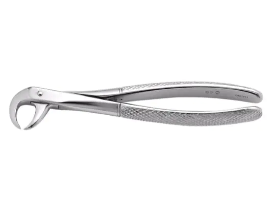 فورسپس زاویه‌دار مخصوص دندان عقل برای راحتی دسترسی و کاهش فشار روی لثه و استخوان بهترین گزینه است.